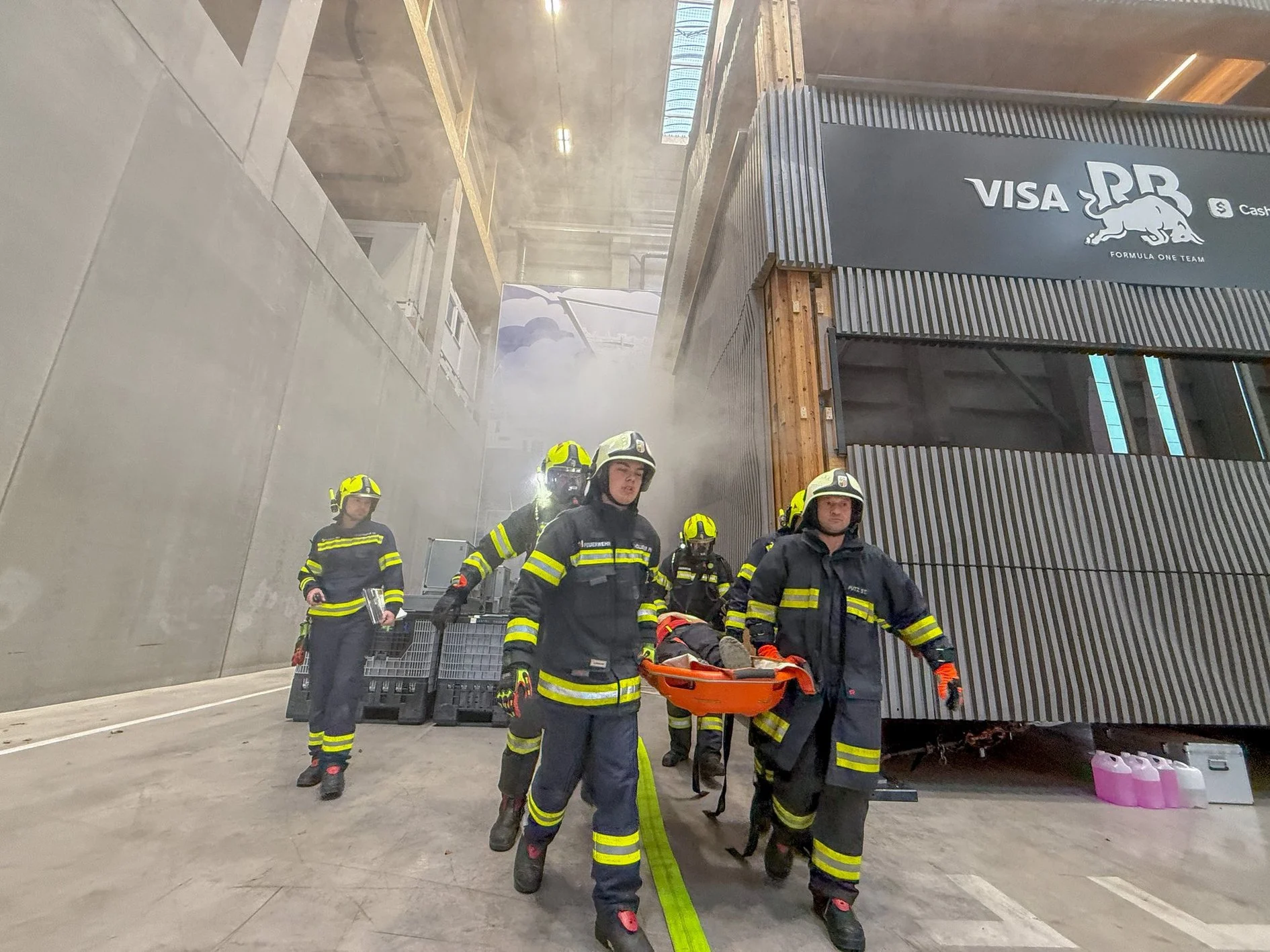 Beim Eintreffen der Feuerwehren Oberwang und Oberaschau stellte sich heraus, dass im Inneren des Gebäudes die Formel 1 Energy Station, die dort renoviert wird, in Brand geraten ist. Die Red Bull Energy Station ist ein Hospitality Holzhaus welches im Paddock (VIP) Bereich der Formel 1 Rennstrecken aufgebaut wird. Die Station stellt die Basis für die Red Bull Formel 1 Teams mit Bereichen für die Crew, Verpflegung, Entspannung und für Gäste dar. Das multifunktionale Motorhome wird nach einem einzigartigen System schnell auf- und abgebaut und reist mit dem Formel 1 Zirkus mit.
