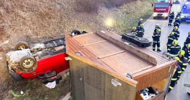Kleinbus mit Jausenanhänger überschlägt sich auf A1