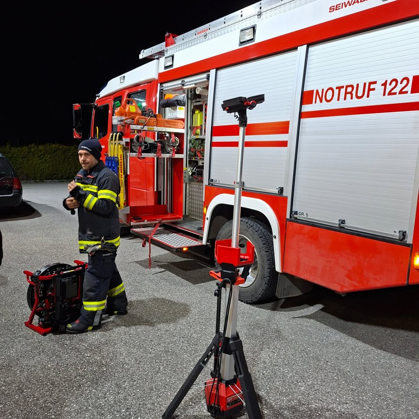 Zusätzlich wurde die Übung genutzt, um einige Neuanschaffungen – darunter ein Akkulüfter sowie ein Akku-Lichtfluter – zu testen.